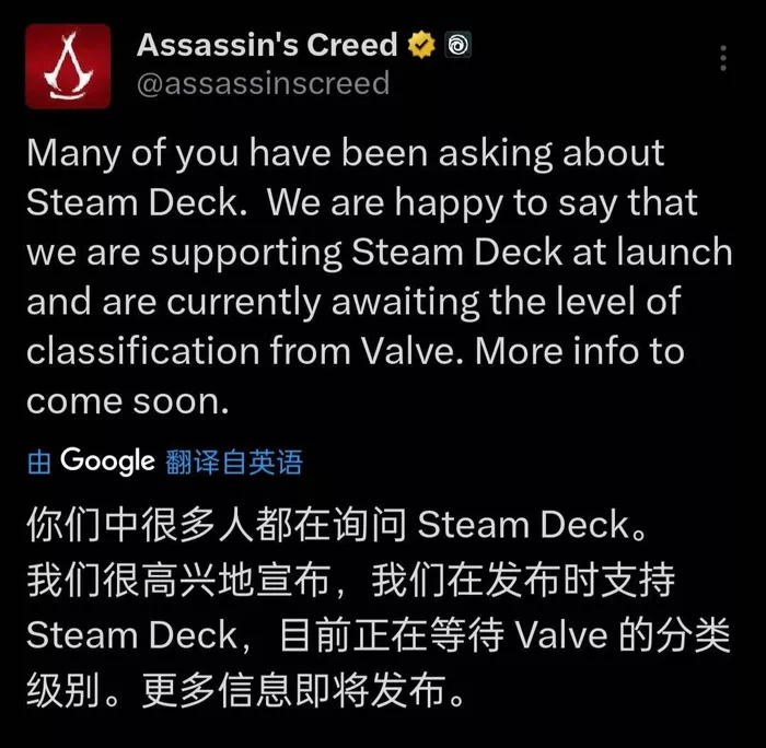 之前,育碧曾透露《刺客信条:影(Assassins Creed Shadows)》尚未针对SteamDeck进行优化适配。然而,在今日凌晨发布的最新公告中,育碧确认该游戏将在首发时就支持SteamDeck,目前正等待Valve公司对其进行适配性分类。