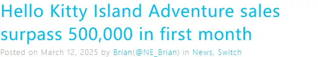 近日,三丽鸥生活模拟游戏《凯蒂猫岛冒险(Hello Kitty Island Adventure)》销量突破50万份,本作在Steam平台为特别好评。
