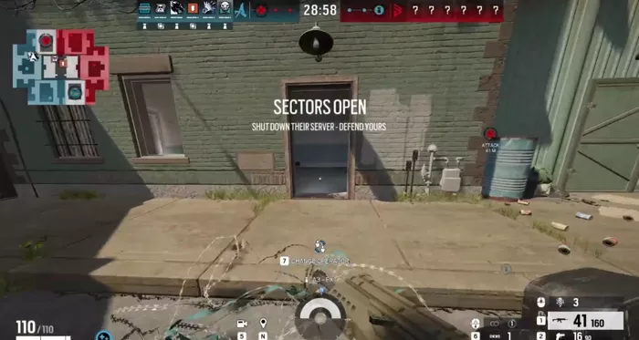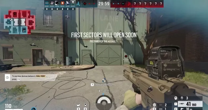 新模式搭配了R6史上最大的专属新地图“地区”(District)。地图大致分为上、中、下三个区域:Front A、中立区和Front B。Front A和B同时也是玩家的重生点,每局会随机分配进攻和防守方向。