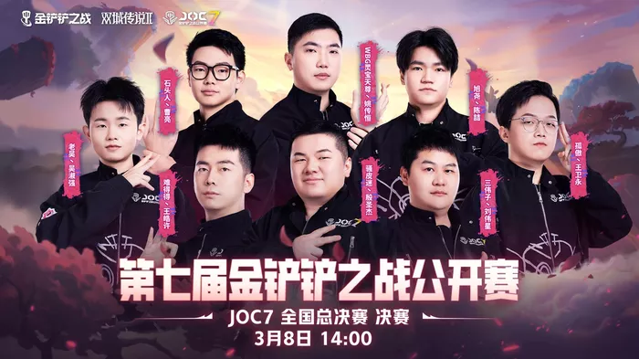 全国总决赛阶段,在经历6个比赛日的激烈角逐后,灵宝天尊丶姚传恒、老吴丶吴淑强、三伟子丶刘伟星、骚皮迷丶殷圣杰、旭尧丶陈喆、石头人丶曹亮、难得得丶王皓许、孤傲丶王卫永8位选手成功挺进决赛,围绕JOC7冠军展开最后的对弈。值得一提的是,进入决赛的8位选手中,有身经百战的老将,也有初次亮相的新秀,但无一例外他们都未曾染指JOC冠军宝座,谁将踏上金铲铲之巅,捧起一座属于自己的奖杯,也是本次决赛赛前最大的看点之一,触动着现场以及直播前每位弈士的心弦。