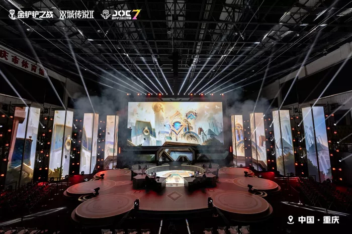 8日下午,决赛舞台灯光亮起,呼应双城传说Ⅱ版本的舞台被装点成皮城议会大厅主题的圆桌议会形式,如同《双城之战第二季》剧集中各方势力汇聚于此,引领瓦洛兰大陆风云变幻一般,今天赛场中圆桌议会上的八位选手也将改变金铲铲之巅的格局。