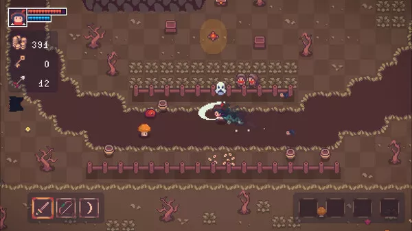 玩家拥有丰富的武器库,包括剑、弓、回旋镖、魔法杖和炸弹。可以前往铁匠铺升级武器和装备,从当地商店购买资源来增强实力,还能通过向智慧的女巫学习制作药水,探索古老的炼金术秘密。