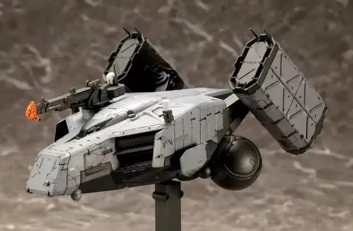 此外,寿屋工作室以1/350的比例制作了DHV麦哲伦的精细模型。该模型全长约220毫米,高度还原了其独特外观与复杂结构,其设计风格与《合金装备》中的“雷克斯”头部颇为相似。