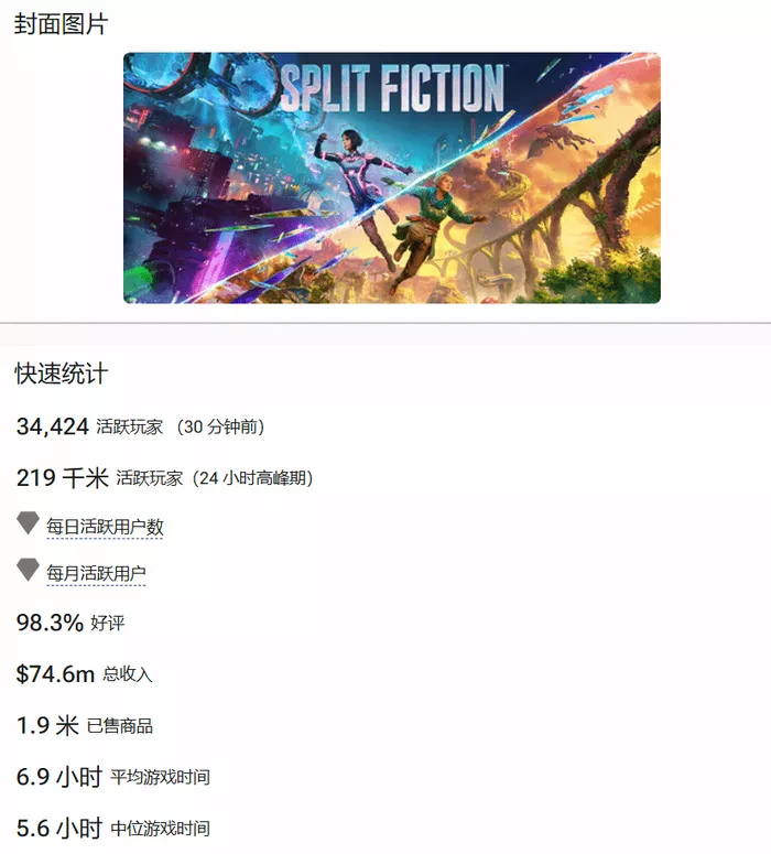 据国外数据分析公司VG Insights的数据显示,截至发稿前,《双影奇境》在Steam平台的预估销量达到190万份,销售额也已达到7460万美元(约5.397亿元RMB)。