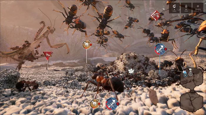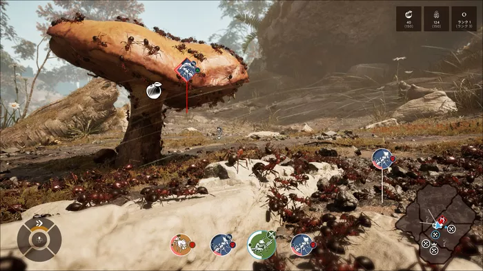 玩家需要向己方的蚂蚁下达指令,在守护好自己阵营据点的同时,目标是摧毁敌方据点。玩家要打倒聚集在资源处的妨碍者,建造防御设施,推进探索并向敌方据点发起攻击。游戏不仅支持单人游玩,还能让玩家享受最多 3 人的在线对战乐趣。