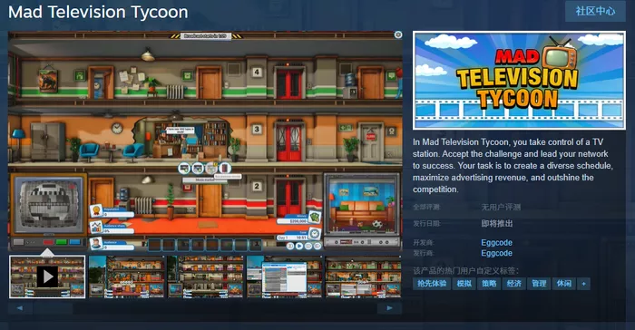 《疯狂游戏大亨》团队新作《疯狂电视大亨》预计将于2025年年内发售,登陆Steam,目前该作已经上架。