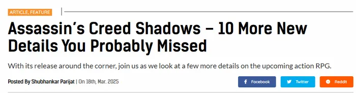 《刺客信条:影》还有两天就要正式发售了,近日,外媒gamingbolt盘点了本作容易错过的10个重要细节,帮助大家更好的了解游戏,一起来看看吧!
