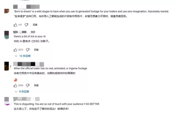 这本该是个好消息,但这段预告片却遭到了大量粉丝吐槽、抵制。许多玩家怀疑该预告片并非由传统制作流程完成,而是借助AI生成。