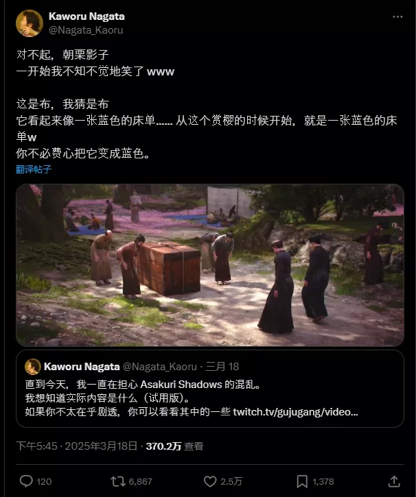 Ubisoft的《刺客信条:影》在发售前就因时代场景、文化和物品的还原度问题引发了不少争议。随着游戏正式发售,更多玩家开始寻找其中不符合历史背景的细节。其中,游戏开头一幕赏花场景中出现的鲜艳蓝色布料,被日本网友调侃为“蓝色塑料布”。