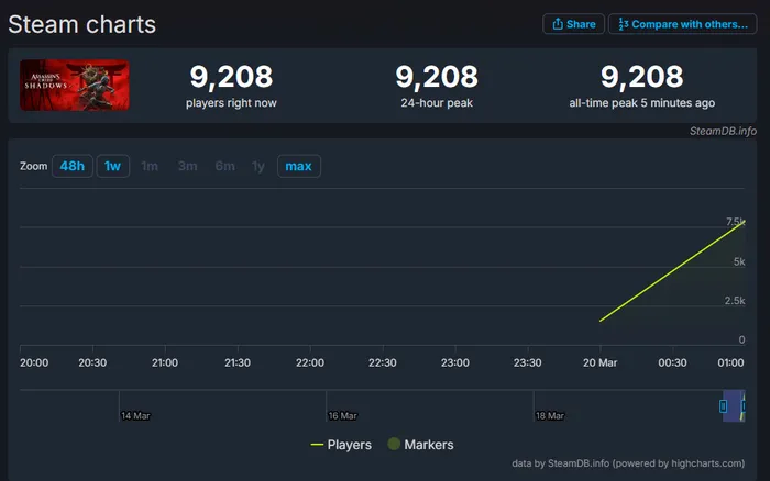 截至发稿之时,《刺客信条:影》在Steam平台上的表现十分亮眼,其在线峰值人数已经达到了9208人,并且这一数字还在持续攀升,距离突破一万人大关仅一步之遥。如此火爆的态势,足以证明该游戏在玩家群体中拥有着极高的人气。