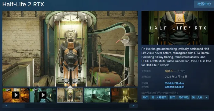 Orbifold Studios是一个由开发者组成的社区,他们此前曾参与开发过《半条命 2》的多个Mod,像《半条命 2:VR》《半条命 2:重制资产》以及Project 17等。此次《半条命 2 RTX》同样以《半条命 2》的Mod形式开发,这意味着《半条命 2》的用户可以免费体验到这款重制版游戏。