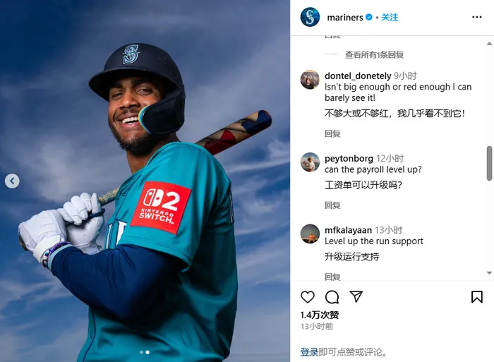 不过,一些迹象显示,Switch 2在今年上半年发布的可能性更大。美国职业棒球大联盟(MLB)的西雅图水手队宣布,他们将与任天堂再次携手合作(双方有着深厚的合作渊源,任天堂还曾是该球队的主要股东)。在客场比赛中,水手队球员的袖子将绣上Switch 2的标志,这一举措无疑为新主机的发布增添了几分神秘色彩。