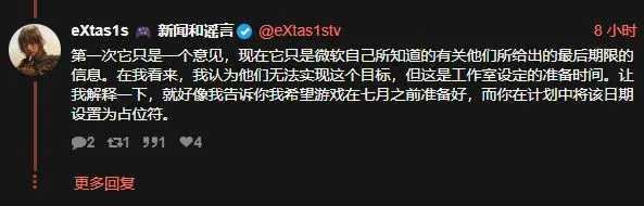 eXtas1s:“这是微软自己知道的关于开发团队告诉他们最后期限的日期,至少这是工作室预期的他们希望能准备好游戏的时间”
