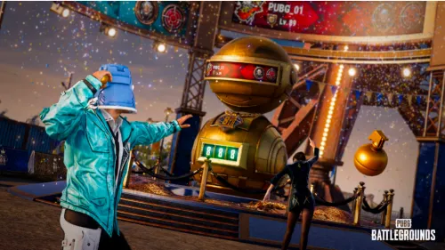 为了庆祝游戏翻开新篇章,官方这次在游戏里举办了一个巨型派对,所有地图的出生点都安放了一个三级头机器人,向它投掷黄金手榴弹便会计数,每当命中特定次数时,电子屏幕上还会显示出命中者的昵称。