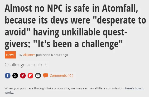 据悉,《原子陨落》中的几乎所有NPC都可以被玩家击杀。开发团队强调,他们“极力避免”让主线任务中的角色成为无法攻击的“神圣NPC”,从而确保游戏的沉浸感和自由度。