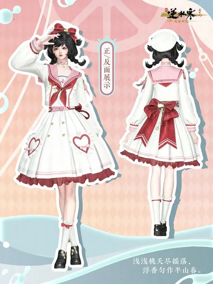 这套让千万人为之狂热的春日爆款,就是网易《逆水寒》最新推出的超萌JK风时装—【晴海浮光&桃心浅浅】。时装以航海主题为灵感,整体造型洋溢着清新元气,单看一眼,仿佛便能感受沁爽海风扑面而来。青春活力的风格使其刚公布就成了《逆水寒》里众多追求高颜值的外观党们的心头好,纷纷笑着打趣:穿上它,出海“摸鱼”都更有劲了。