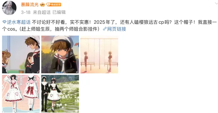 学院风的造型设计也让大家幻视二次元动漫角色,比如有玩家刚看完时装爆料,第一时间就想到了COS纯爱少女漫《魔卡少女樱》中的角色。嘿,你别说,真的完全就是“樱狼CP”同款!
