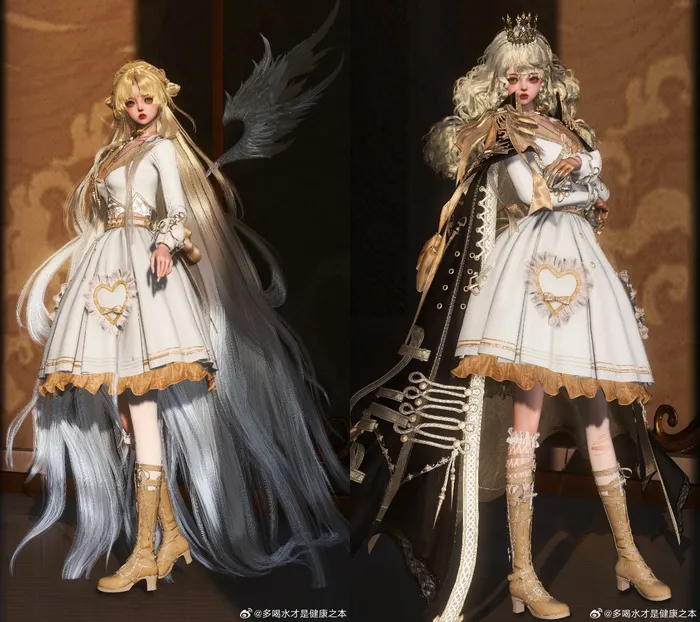 还有玩家另辟蹊径,将原本的校园风JK改造成女王范儿穿搭,白金染色搭配欧式风格披风、王冠,高级感MAX的同时还自带几分西幻风情。