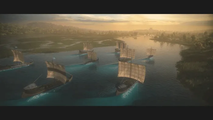 游戏提供18种历史船只,支持自定义装备,如攻城器械、船帆等。角色系统新增北欧风格的外观选项和航海技能,兵种树中加入擅长海战的部队。全新任务线通过过场动画和经典玩法引导玩家探索海域,对抗海盗联盟。