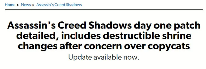 如今,玩家在《刺客信条:影》的神社中,会发现主要物品如桌子、货架等都已无法被摧毁,不过鼓、碗等小型道具仍可破坏,而桌子也仍然可以被推开或移动。这一改动在游戏正式上线前夕就已悄然实装,大多数玩家进入游戏时便已自动应用。