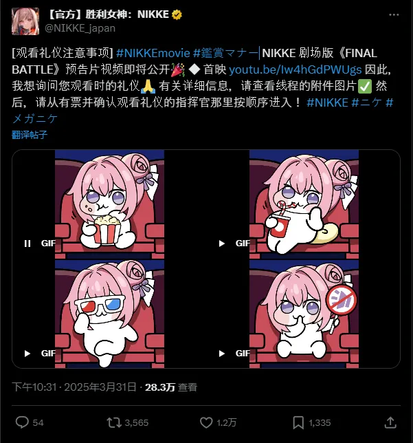 Level Infinite与SHIFT UP合作开发的美少女射击RPG《胜利女神:妮姬》日本官方宣布,由游戏角色谢芙蒂执导的剧场版《FINAL BATTLE》将于4月1日在官方YouTube频道首播。