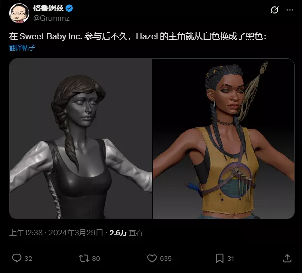 早在发售前,该作就因开发商出现在Sweet Baby Inc合作名单引发关注。这家2024年备受争议的顾问公司,被指参与过多款游戏的叙事调整。更戏剧性的是,前《魔兽世界》制作人Mark Kern(Grummz)爆料称,通过与Compulsion Games前员工交流得知,游戏原设主角为白人女性,后经Sweet Baby Inc介入才改为非裔黑人女主角。不过该说法尚未获得官方证实。