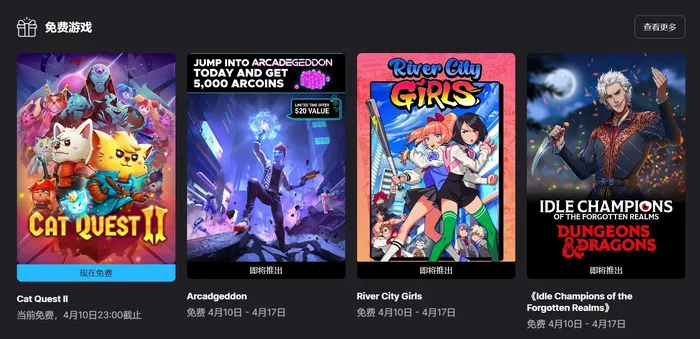 本周Epic喜加一游戏正式公布,动作RPG游戏《猫咪斗恶龙2》免费领取!领取日期截止到4月10日23:00,玩家们可千万不要错过。Epic下周将会送出三款游戏,分别是《Arcadgeddon》、《热血少女》、《遗忘国度之闲置冠军》。