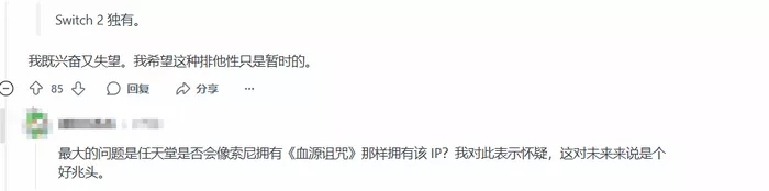 同时,也有部分玩家担心本作会像《血源》一样,一直被任天堂持有IP,无法登陆其他平台。“我真希望这种排他性只是暂时的。”
