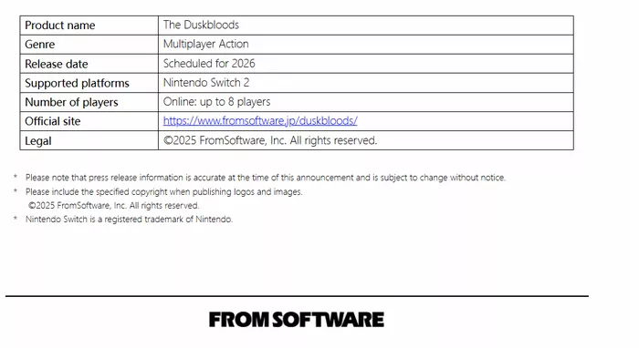 From Software在最新任天堂直面会上正式公开新作《The DuskBloods》,该作将于2026年登陆Switch2平台,采用PvPvE玩法,支持最多8人联机。目前游戏官网已上线。