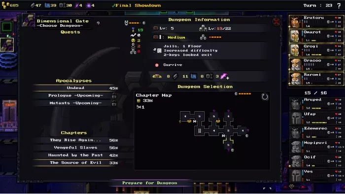 为应对地下城多变的情境,游戏提供13种职业的角色,其能力值与初始技能均为随机生成。玩家可以根据坦克、攻击手、治疗者等角色特性,组建能发挥协同效应的多样化团队,通过升级技能和装备神装来解放最大潜能。